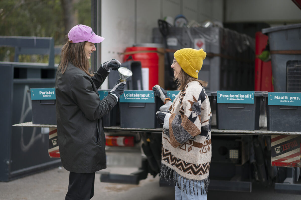 The HSY Sortti collection truck operates across the Helsinki metropolitan area and Kirkkonummi from March 30 to June 1. These trucks accept household hazardous waste as well as metal, electrical, and electronic waste free of charge.